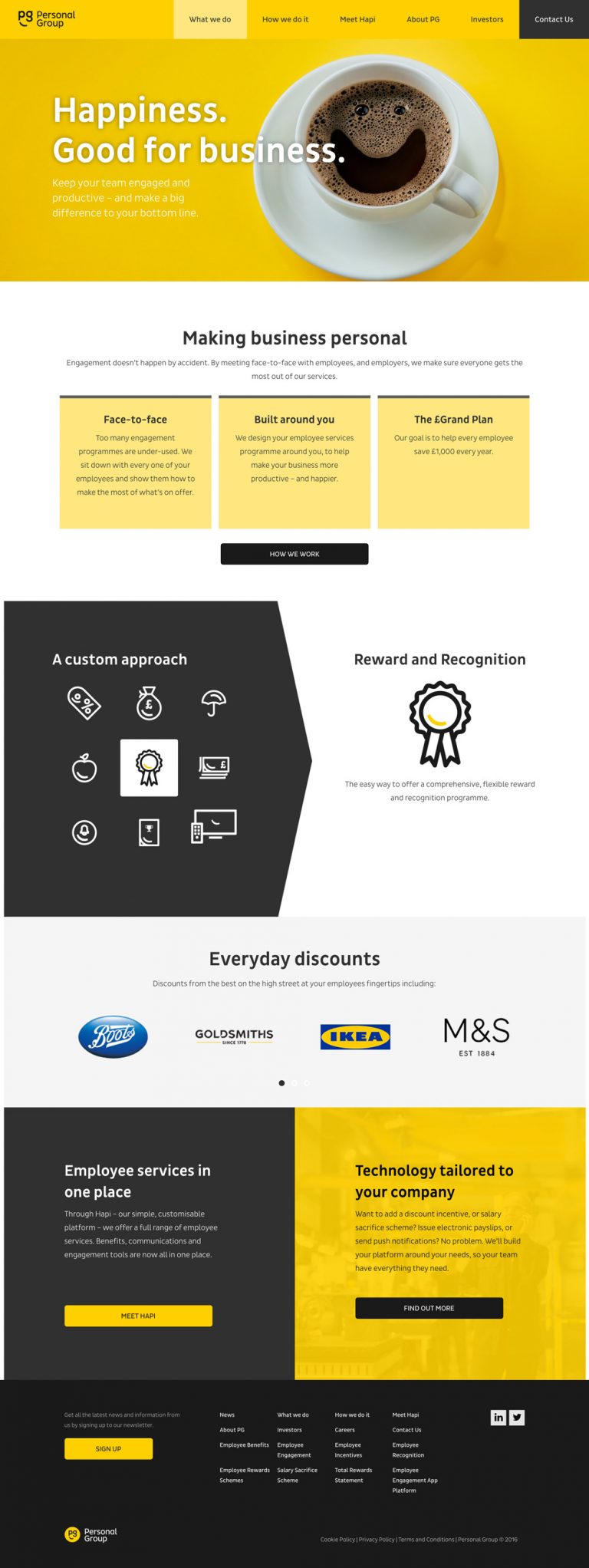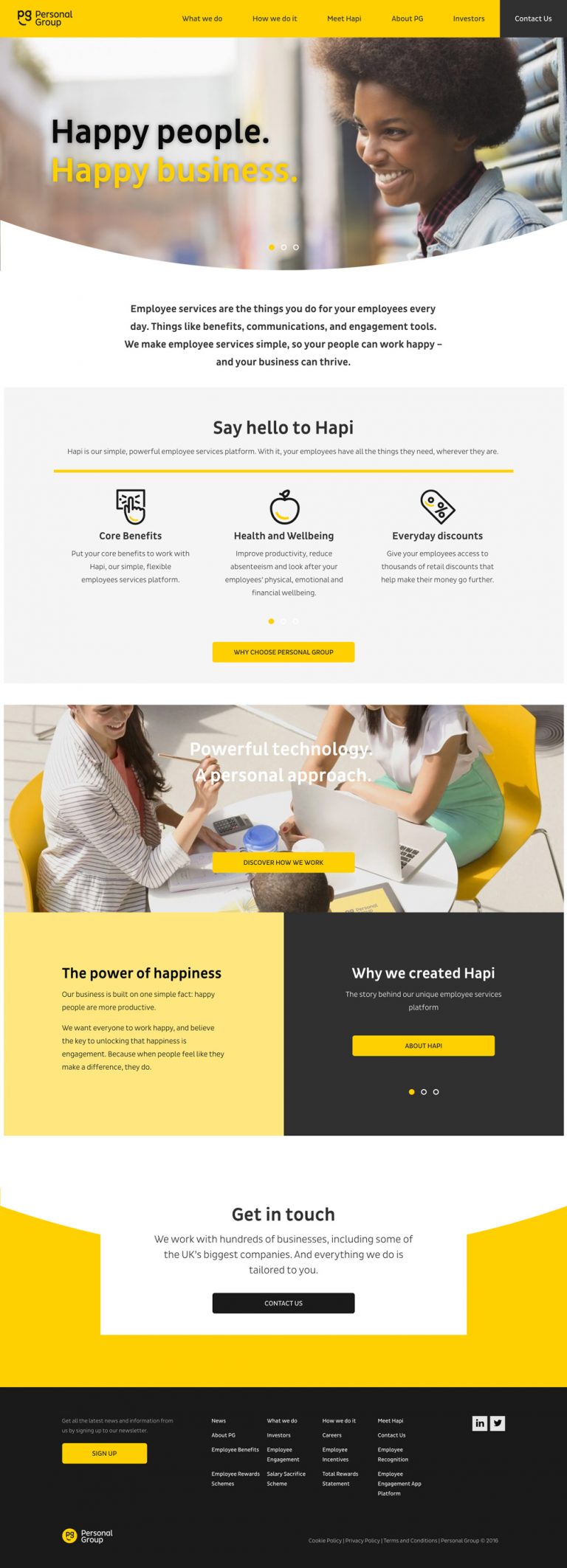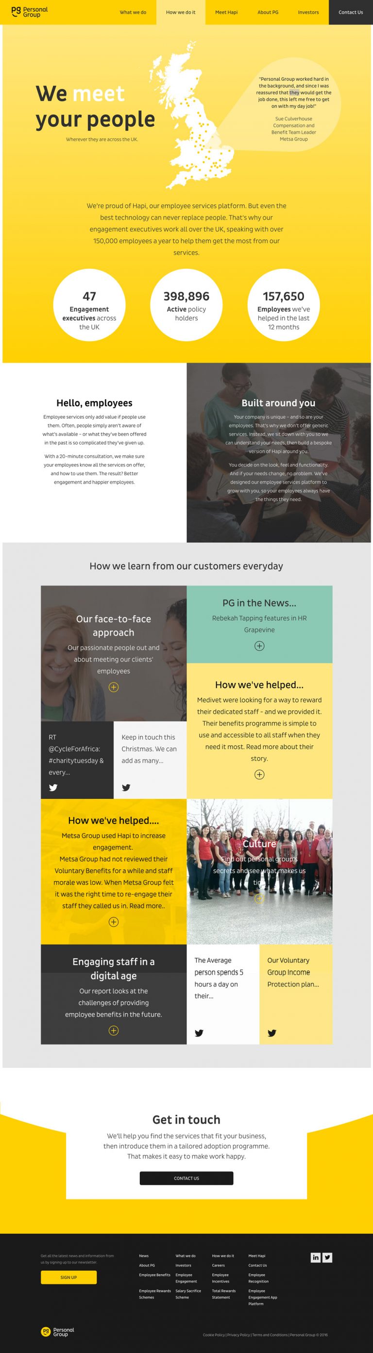 I worked as part of a 2 developer team to build a flexible website for the the employee benefit company Personal Group. The flexibility that was built into the custom WordPress template meant that the team at Personal Group had the freedom to build pages from modules in any arrangement; without the constrains of a typical rigid template.