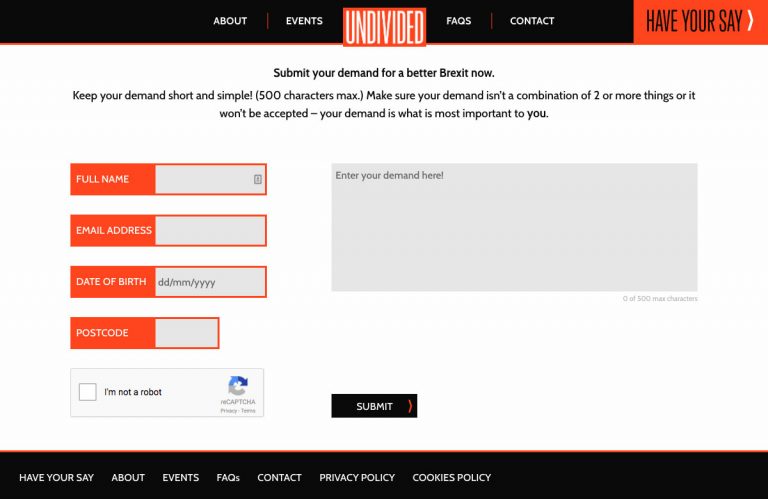 A youth led organisation with a hugely important and politically relevant message. I was responsible for the build of their website. Work included smooth transitions and animations on the home page (logo and tiles), multi part forms with age verification, and seamless integration of represent.me platform.